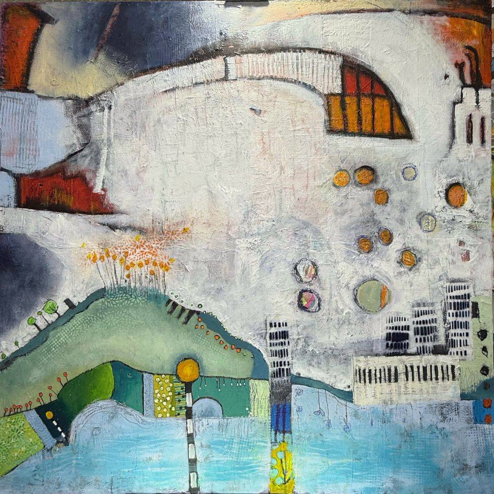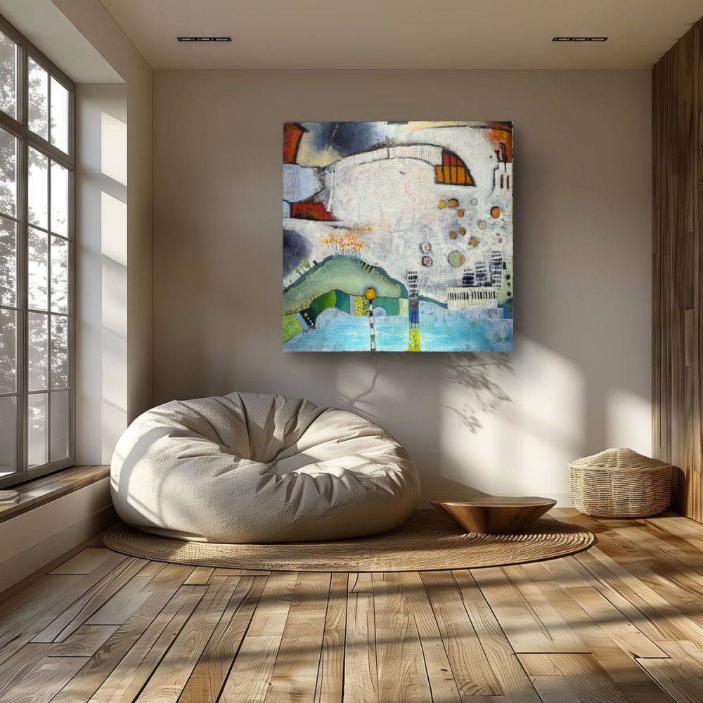 “Chameleon #2 by British artist Tim Willcox is a contemporary abstract mixed-media painting that explores fragmented urban topographies through layered mark-making, shifting colour fields and expressive gesture, revealing the ongoing dialogue between built environments and the natural systems that shape them.”