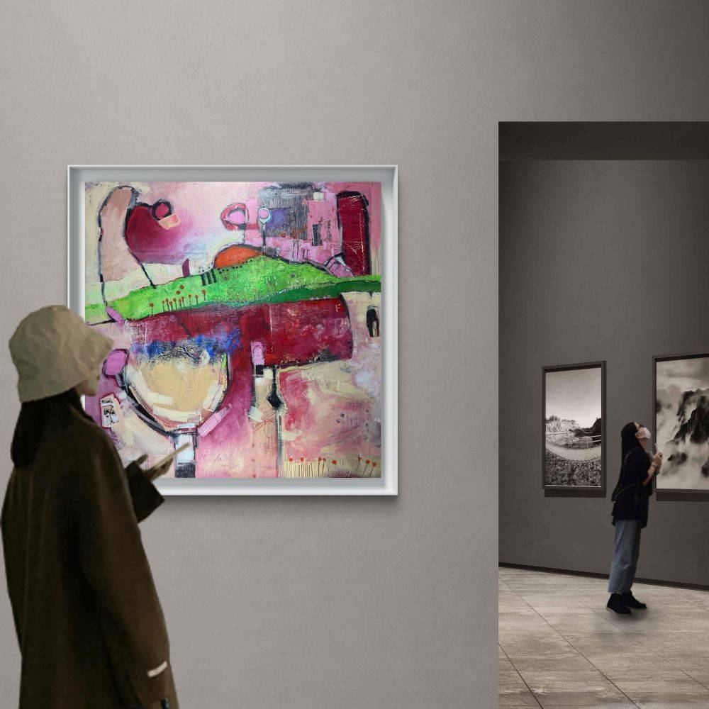 With Chameleon #4, I wanted to let go a little more as across the series I’ve been slowly shifting away from a clear environmental narrative and leaning into the joy and tension of abstraction itself. In this painting, familiar motifs are still there if you look for them, but they’ve been deliberately blurred, broken and quietened. The pedestrian crossing beacon hovers as an incomplete signal, half-recognisable and half-forgotten, while architectural forms retreat into the background rather than asserting themselves.